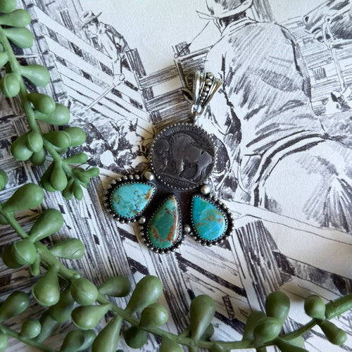 3-Stone Blue Ridge Buffalo Coin Pendant
